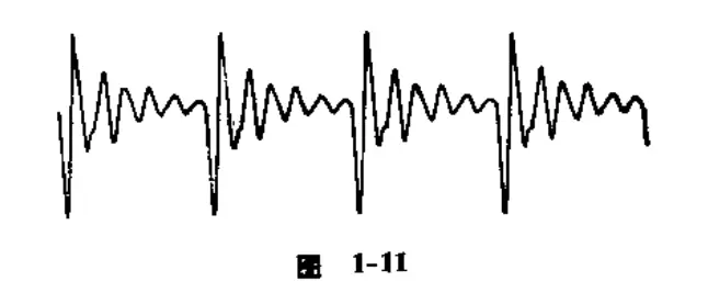 气流通过声门时,使声带颤动,产生周期性声波,就是浊音。前一节介绍声波时所举各例都是周期性的,从语音角度看,都属于浊音。浊音最为响亮,是语音中最重要的声源。普通话 a 的声波就是周期性的,属于浊音声源。图 1-11 是 a 声波中的一小段,包含四个周期: