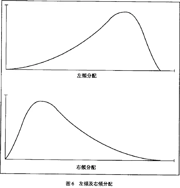 真正的分布通常并不对称,而是倾斜的。就像我的故事所显示的,差异朝一个方向延伸得比另一个方向长,依据延长线的方向,而有左倾或右倾的分别(图 6)。倾斜的原因很迷人,而又充满对系统本性的了解,因为倾斜可以衡量与随机相违的程度。本书因为都在探讨差异的本质,以及它们随时间而变化的原因,倾斜就成为所有例子的重要原则。
