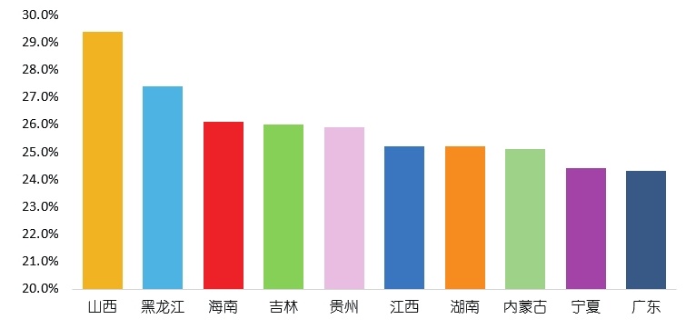 一款宝贝 14 天内统计的数据,转化率的降序排序,将转化率大于 0.95% 的单元格用黄色底色标识出来,可以看到江西、福建、湖南、宁夏、甘肃、山东、广东这 7 个地方的转化率都大于 0.95%。有了这些数据,还不能判定在这些地方加大营销广告力度可以为店铺带来最大的效益。因为江西省的转化率最高,但是它的退款率也不低,高达 20%,也就是说有 100 个顾客购买了这款宝贝就有 20 个客户退款。可见江西省的售后损失较大。所以还要再对不同地区的退款率数据进行分析。