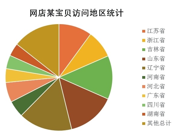 将网店某宝贝的访问地区统计在了一个表格中,似乎只能得出辽宁省访问宝贝比例最高的结论。