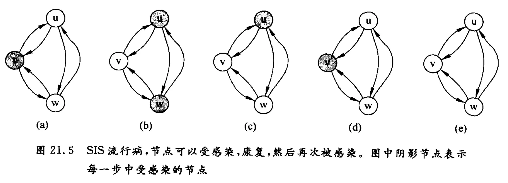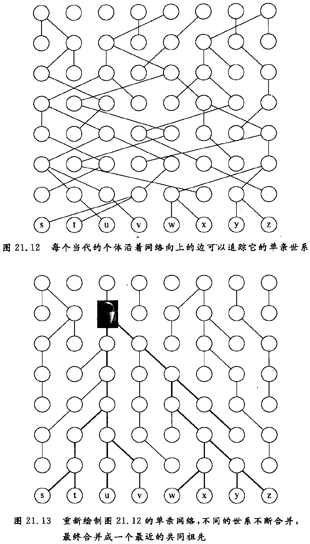 当个人有动机去采纳网络中邻居的行为,可能会出现连锁反应(cascadingcffects),即新的行为始于少量初始的实践者,然后通过网络迅速扩散。图 1.11 是一个小例子,说的是从 4 个最初的买者开始,一本日本图画小说通过电子邮件被推荐的情况。通过对背后的网络结构进行推理,会看到一种先进技术如果始于网络中能够引起增量推广的部分(每次增量不一定很大),是怎么取代尽管是广为使用但落后的技术的。技术的扩散,有可能被阻止在网络中一个密集相连的群集的边界,那样的群集即为一种“封闭的社区”,其中的人们有大量相互之间的联系,从而形成对外来影响的阻力。