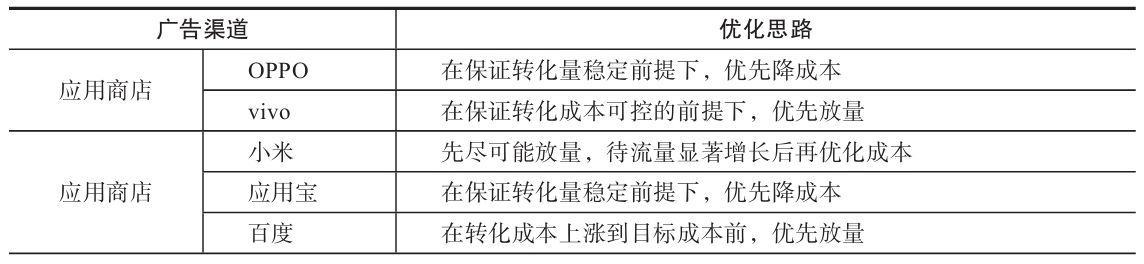 综上,各渠道的优化思路如表 7-11 所示。
