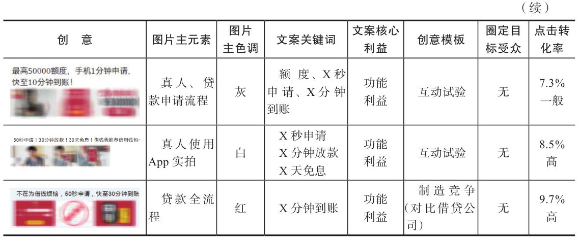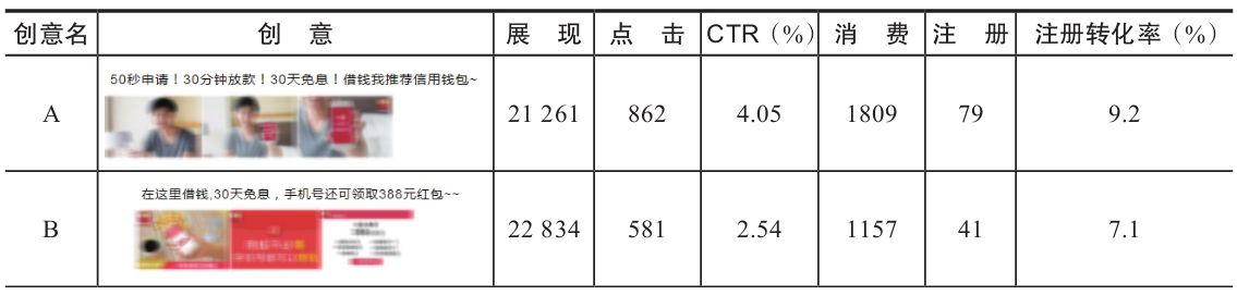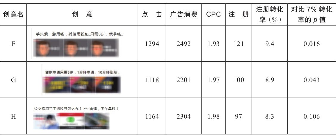 2)轮替多套创意,对比多套创意的点击率优劣,得到点击率显著最优的那一套,请注意是显著最优,而非我们觉得最优,有疑惑的读者建议回顾 1.2.1 节中提到的 A/B 测试例子。